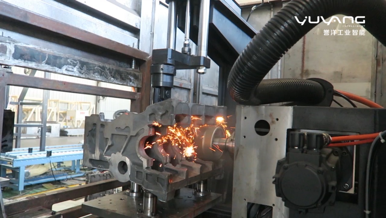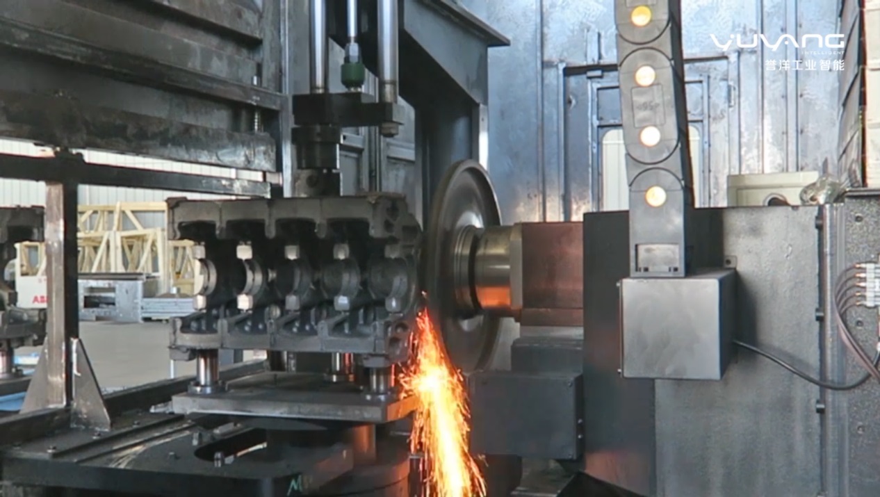由于汽车缸体铸件普遍存在错箱问题,会有很多曲面披锋,传统四面磨技术,容易导致铸件过切或铸件残余量大等问题,往往需要人工进行二次打磨操作,这极大的影响了企业的生产效率。而且,由于恶劣的生产加工环境会影响操作工人的身体健康,导致人工成本水涨船高。
